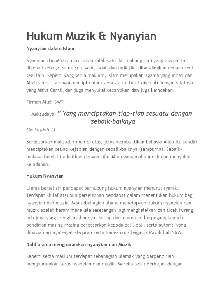 Hukum Muzik Dan Nyanyian Pdf