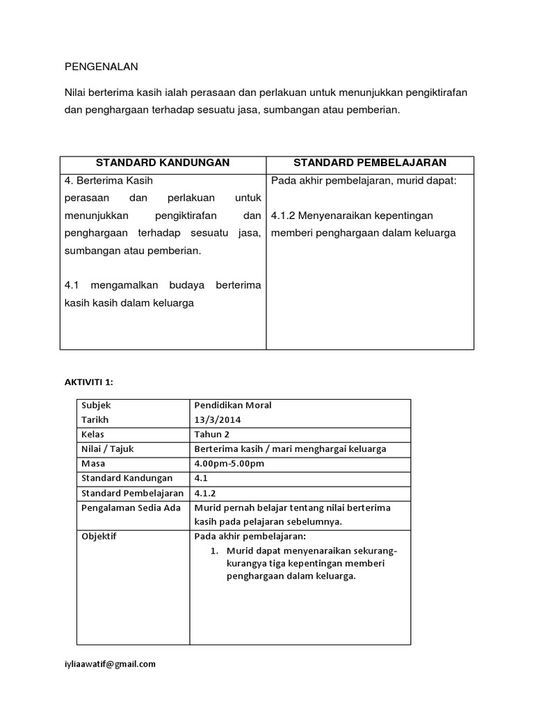 Lesson Plan Moral Unit Berterima Kasih 2 Pdf